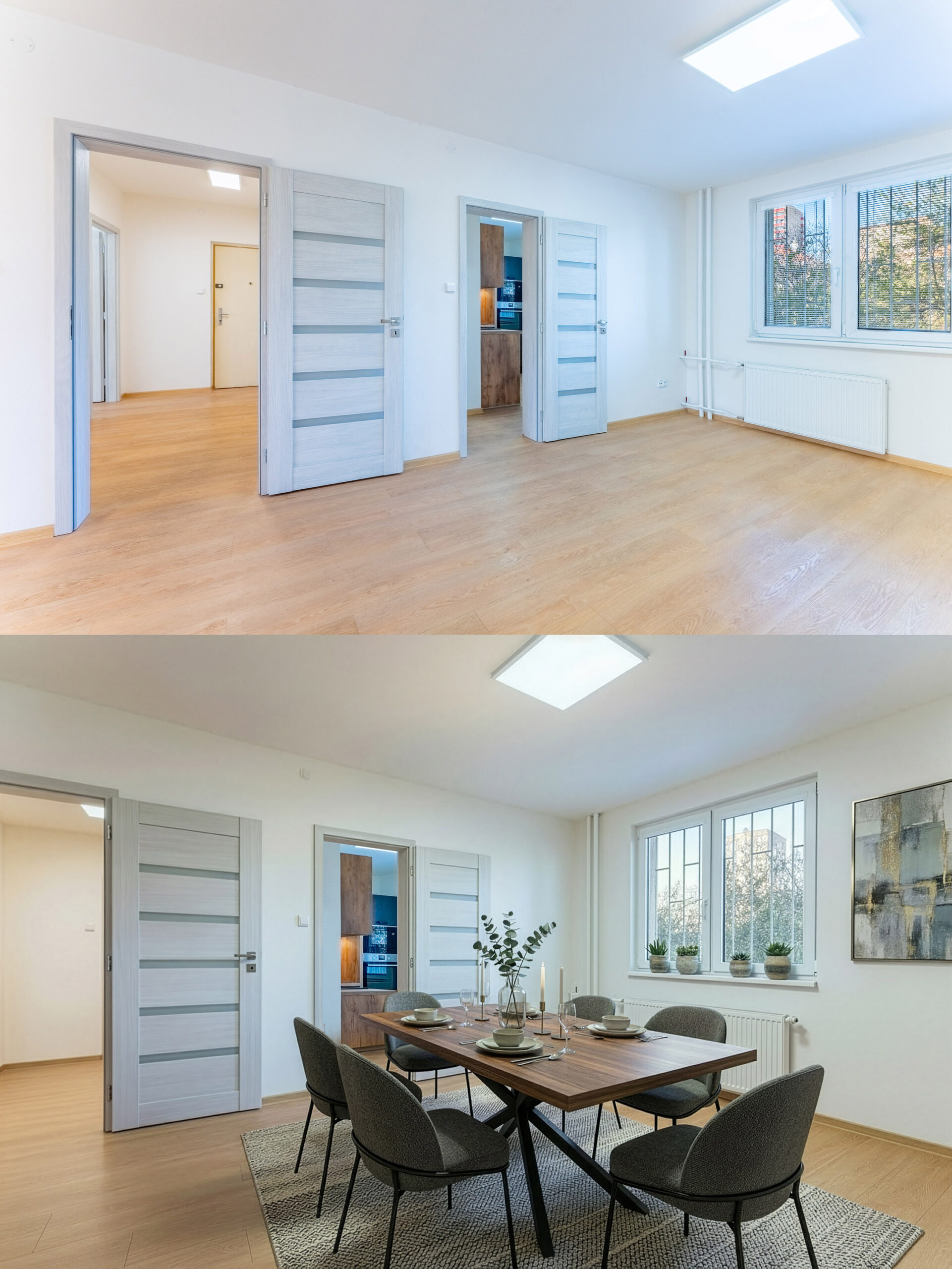 Pokud máte zájem o profesionální fotky bytu nebo domu, je potřeba mít na takové focení nemovitost opravdu pečlivě připravenou. Ideální je úplné odosobnění, které začíná schováním předmětů běžné denní potřeby, jako jsou různé lahvičky a saponáty v koupelně nebo kuchyni, kartáčky na zuby, ručníky a drobné dekorativní předměty (kromě květin - ty jsou naopak vhodné v rozumné míře zachovat). Byt by měl být připavaný tak, aby se v případě videa, dal udělat tzv. "průlet" bytem na jeden záběr - tudíž nelze stěhovat v průběhu focení přebytečný materiál z místnosti do místnosti.